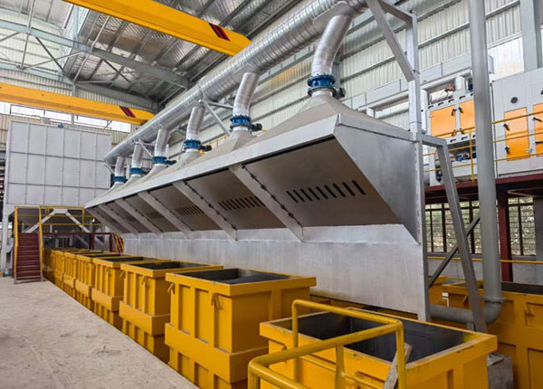 在建河南立德金屬材料科技有限公司3工位半自動消失模生產(chǎn)線、該線配置先進(jìn)新型水浴滾筒、…